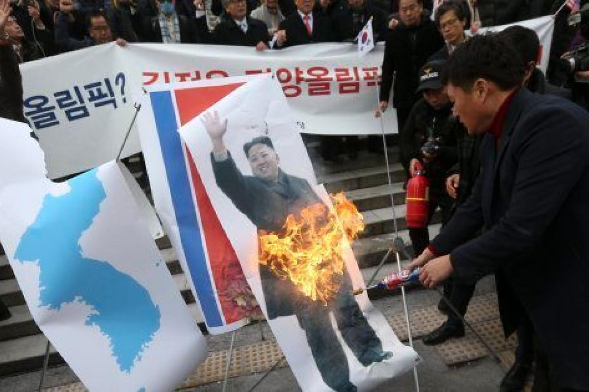 Los manifestantes han insistido en que los Juegos, previstos para febrero, se están convirtiendo en un evento para ayudar a Corea del Norte a ganar reconocimiento a nivel global como potencia nuclear y han quemado una fotografía del líder norcoreano, Kim Jong Un, así como una bandera de su vecino del norte.