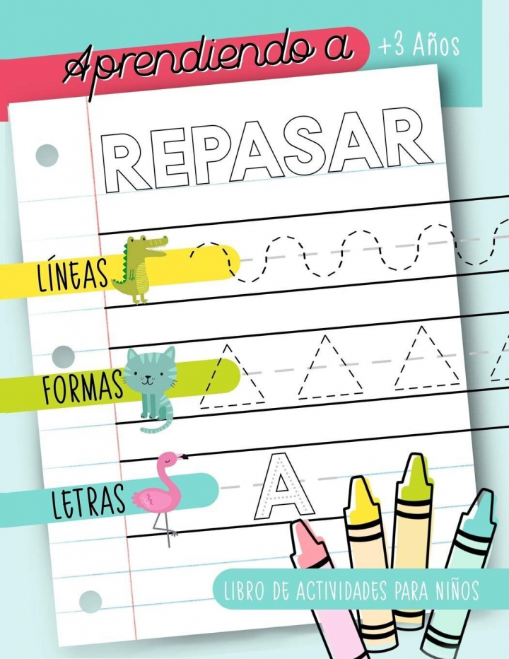 “El libro de actividades perfecto para niños, con el que aprenderán las líneas, formas y letras del abecedario. Todas las líneas, formas y letras están ilustradas de manera sencilla y fácil de identificar para evitar confusiones”. Más de 90 páginas de práctica con ilustraciones grandes.