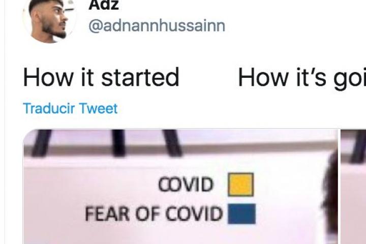 En él, vemos cómo en marzo el “miedo al covid”, en azul, era mayor que el propio “covid”, en amarillo.