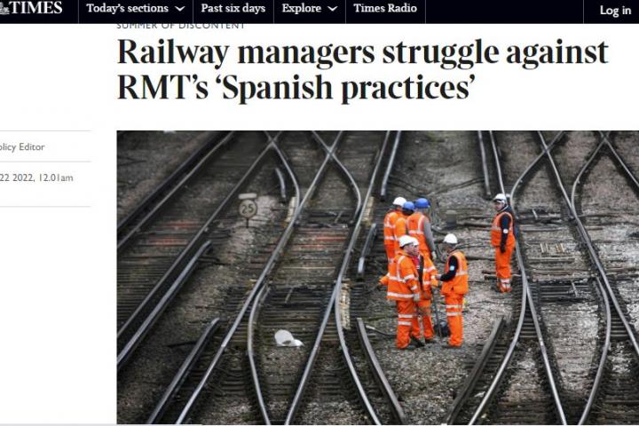 En este contexto, la crisis laboral está copando los titulares de los medios de comunicación británicos. Algunos de ellos, de la talla de The Times, han utilizado un símil que mira España para hablar de una información que implica a 25 diputados laboristas que han apoyado los piquetes y la huelga del RMT. Se trata de varias publicaciones que afean a al líder laborista, Keir Starmer, que sus políticos hayan apoyado preservar medidas que califican con el término de “costumbres españolas” (“spanish practices”).