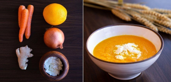 ▶️ Ingredientes: 500 gramos de zanahoria, 1 cebolla, 2 naranjas de zumo (200 ml. de zumo), Jengibre fresco, 700 ml. de agua y queso fresco.