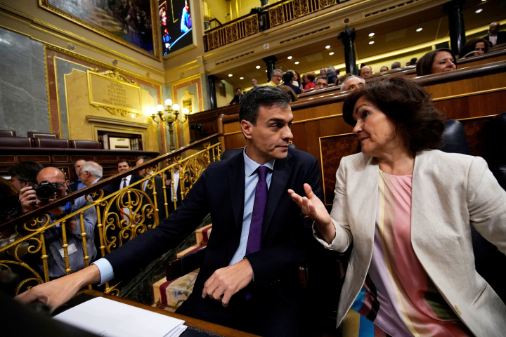 La relación entre Sánchez y Calvo se remonta a las primarias socialistas, pues la ya exvicepresidente fue de las primeras en decantarse por Sánchez. Es su número dos desde que el líder de los socialistas logró desbancar al expresidente Mariano Rajoy a través de una moción de censura.