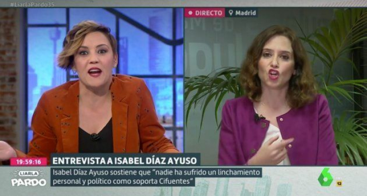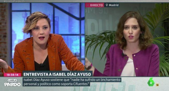 Isabel Díaz Ayuso, candidata del PP a presidir la Comunidad de Madrid, ha sido entrevistada este domingo por la tarde por Cristina Pardo, presentadora del programa Liarla Pardo de LaSexta.