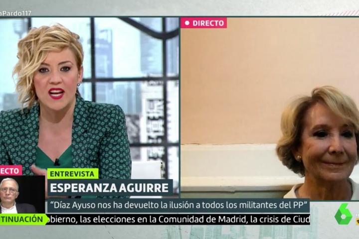 Esperanza Aguirre, expresidenta de la Comunidad de Madrid, ha sido entrevistada este domingo por la periodista Cristina Pardo en el programa Liarla Pardo de LaSexta.