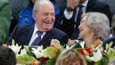 Los reyes Juan Carlos y Sofía, lloran durante el acto de entrega de los restos mortales del padre del rey, don Juan de Borbón el 3 de abril de 1993.
