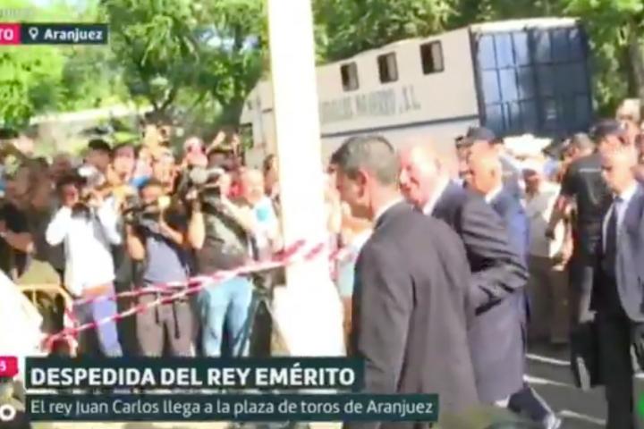 A la entrada de la plaza de toros, donde ha llegado acompañado de la infanta Elena y sus hijos, un reportero del programa Liarla Pardo de LaSexta, presentado por Cristina Pardo, ha intentado obtener alguna palabra del rey.