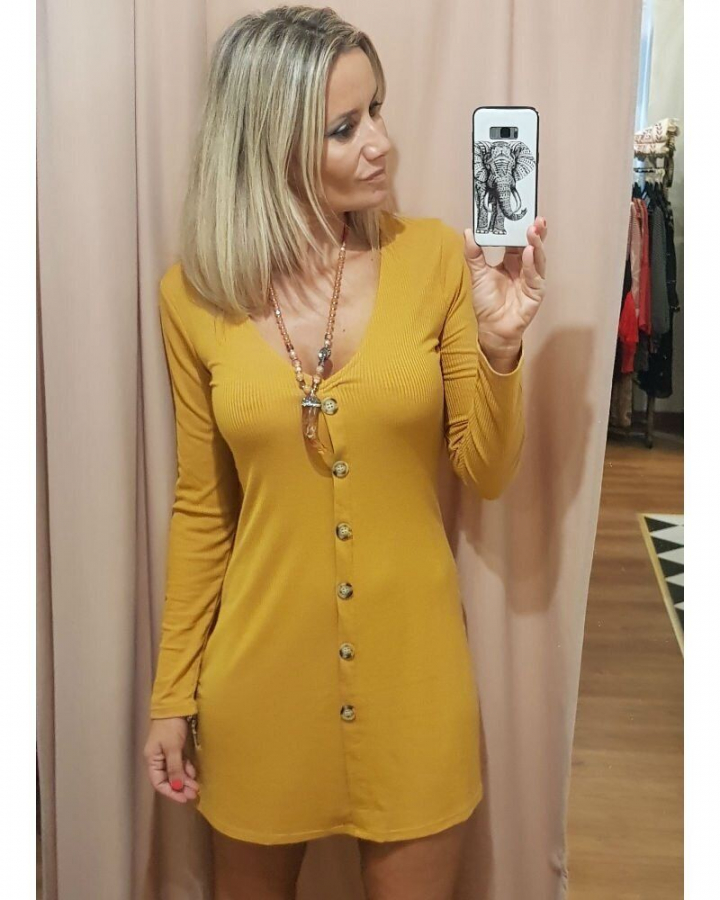 Si te gusta el vestido pero no has llegado a tiempo para pillarlo, aquí tienes otras opciones parecidas y todavía más baratas. Uno un poco más largo y abotonado, en el mismo color y también en canalé, que puedes combinar con unas botas negras o unas Converse, y que puede ser tuyo por 21,49 euros.