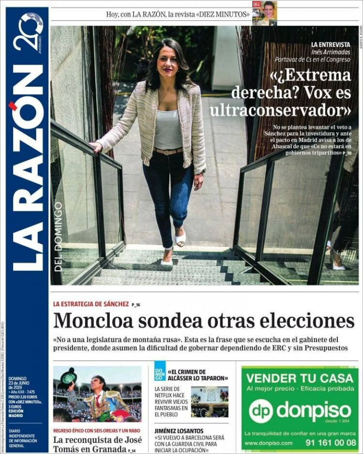 “Vox tendrá que decidir entre un Gobierno liberal y moderado de Cs y PP o un Gobierno de PSOE y populistas”, afirma en un momento de la entrevista.