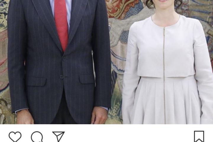Isabel Díaz Ayuso, presidenta de la Comunidad de Madrid, ha tenido que modificar las etiquetas que puso en su cuenta de Instagram en la imagen que publicó tras reunirse con el rey Felipe VI.