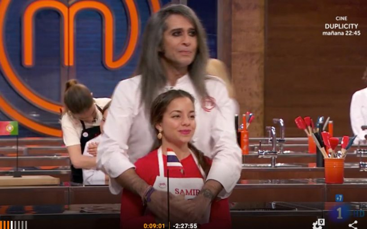 En esta entrega, varios participantes de otras ediciones acudieron a las cocinas para preparar platos junto a los actuales aspirantes. Entre ellos Mario Vaquerizo, que saludó con un beso en los labios a Samira.