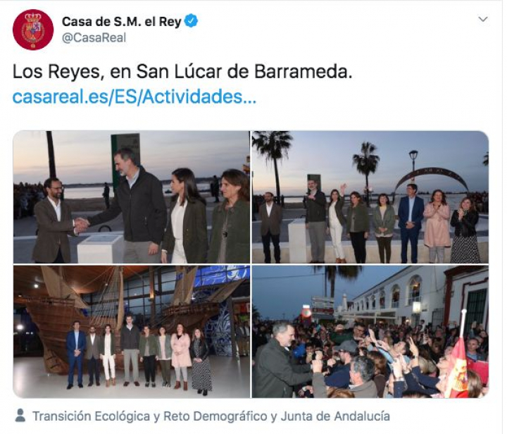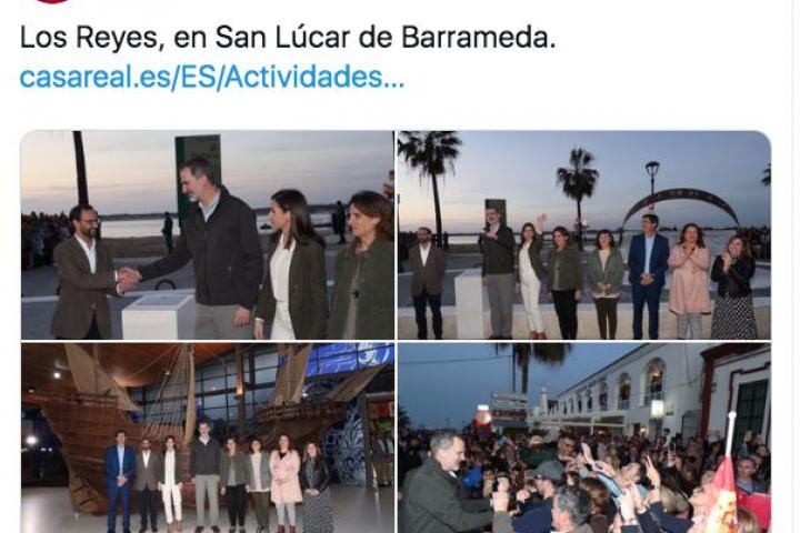 Sin embargo, un clamoroso error ha llamado poderosamente la atención de los usuarios de esta red social, ya que en el tuit que acompaña a las fotografías de la visita de Felipe y Letizia a Sanlúcar se puede leer lo siguiente: “Los Reyes, en San Lúcar de Barrameda”.