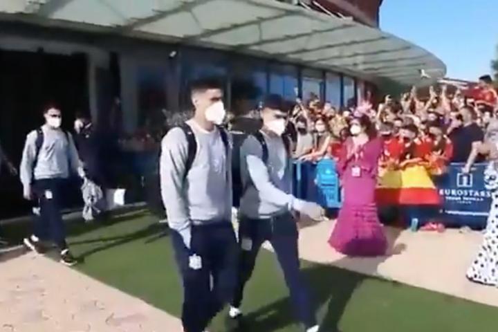 Como se puede ver en un vídeo que ha publicado la cuenta en Twitter de la propia selección, centenares de personas se acercaron a la puerta del hotel a animar a los jugadores antes del importante partido de este sábado.