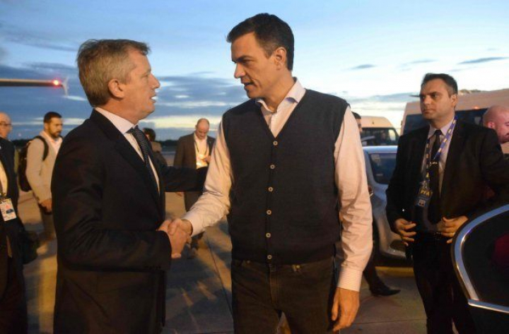"Parece que la comodidad durante el vuelo se impuso a un recibimiento en el que, lógicamente, había fotógrafos esperando para retratarlo todo. La llegada de Pedro Sánchez, a última hora del día, fue menos espectacular, desde luego, que la del resto de líderes", dice el medio.