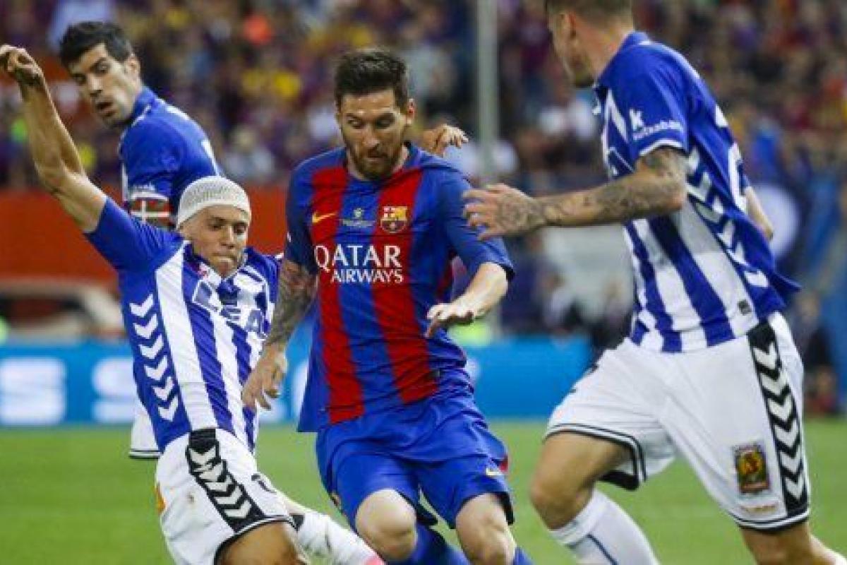 El árbitro pita el final. El Barcelona, campeón de la Copa del Rey. Los jugadores culés lo celebran y los del Alavés, agotados, se hunden en la derrota.