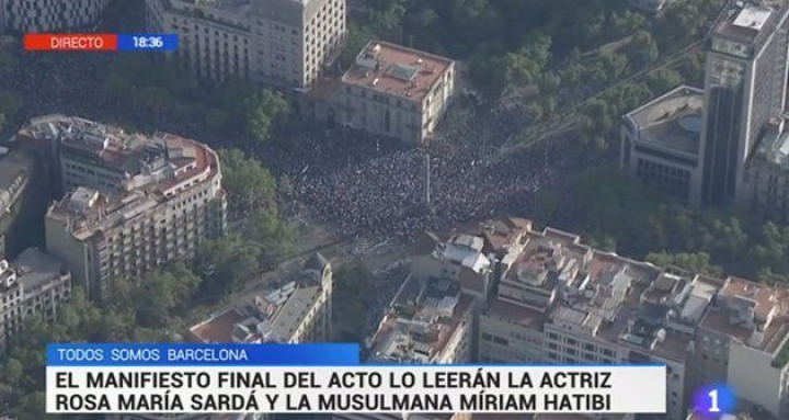 Poco antes de que comenzara la lectura del manifiesto de la manifestación contra el terrorismo celebrada este sábado en Barcelona, Televisión Española anunció con un rótulo quiénes serían las dos mujeres encargadas de leerlo.