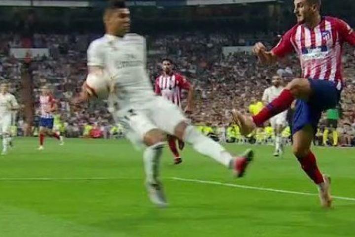 Ha sido en un centro de Koke desde la banda izquierda en el que el balón ha impactado en el brazo derecho del centrocampista brasileño del Real Madrid.