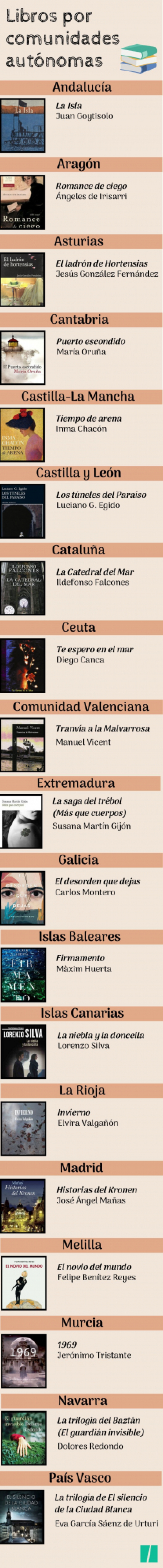 En esta lista puedes ver cuál es la novela contemporánea que mejor representa a cada una de las 17 comunidades autónomas y las dos ciudades autónomas.