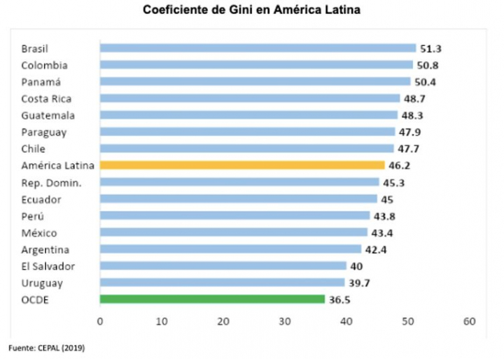 Algo muy llamativo del caso chileno es que, aunque los niveles de pobreza se han reducido drásticamente en Chile durante los últimos 20 años, y es, junto con Uruguay, el país más rico de América del Sur en términos per cápita, sigue siendo un país muy desigual, incluso por encima del promedio en Latinoamérica, un continente ya de por sí tremendamente desigual. Los chilenos culpan de ello a la vieja constitución, heredada de Pinochet.