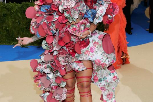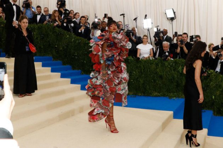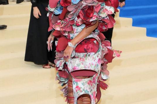 Este año, la gala del MET estuvo dedicada a Rei Kawakubo, fundadora de la firma Comme Des Garçons, y una de las diseñadoras más influyentes en occidente. Muchas invitadas acudieron con sus diseños, entre ellas Caroline Kennedy que, por supuesto, llamó la atención por el modelo elegido. Aunque una de las más llamativas fue Rihanna, con un modelo imposible, incluso para ella, transformada en una flor gigante con pétalos multicolores.