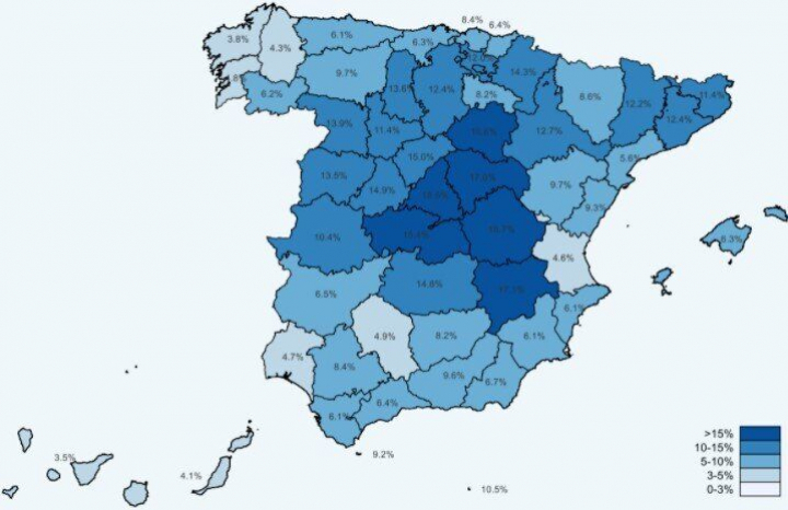 La media nacional es del 9,9%, pero hay territorios por encima del 18% y varios por debajo del 5%.