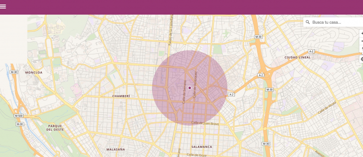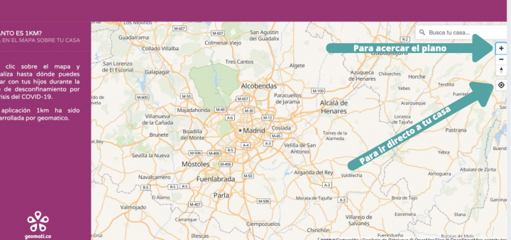 La web ¿Cuánto es un kilómetro? sirve para resolver todas estas dudas. Usando el botón + de la derecha se puede buscar nuestra casa o ir directamente a ella usando el botón inferior de esa columna. Al acercarse, la web te dibuja directamente el círculo que abarca el radio que abarca un kilómetro alrededor de nuestra vivienda.