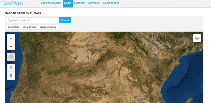 Otra opción es usar Medir radio de la web calcmaps.com. Puedes introducir tu dirección directamente o buscarla con el botón de +. Una vez allí, usando el circulo de la izquierda se dibuja la zona de paseo.