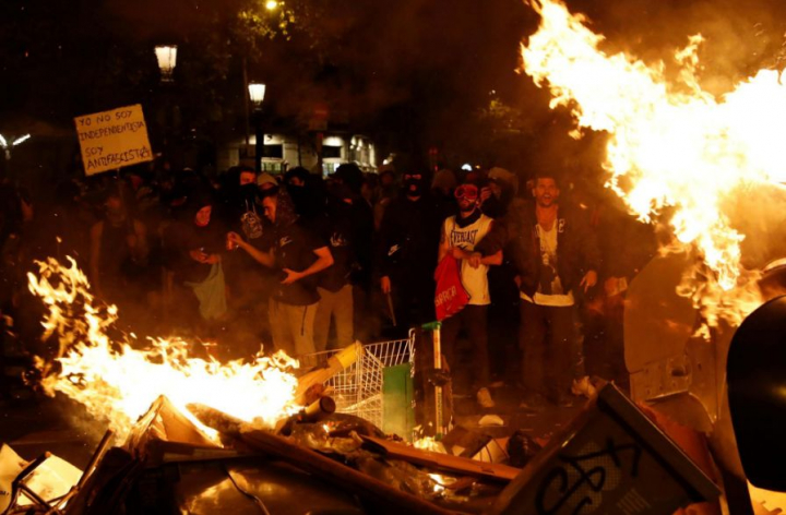 A medida que avanzaba la noche, comenzaban a formarse barricadas con contenedores y mobiliario urbano, como las noches anteriores. Los radicales usaban líquido inflamable para prender las barricadas e impedir el paso a las fuerzas de seguridad.