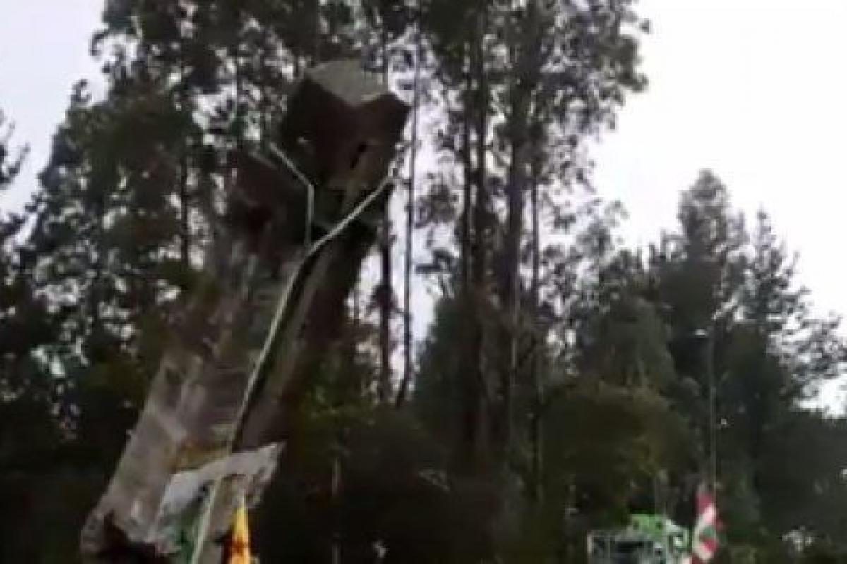 Cuatro heridos durante el derribo de una cruz franquista en Vizcaya