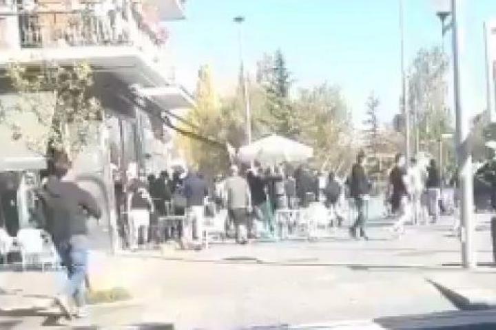 Según testigos presenciales, los participantes en la pelea estaban armados con palos y han arrojado botellas, mesas y sillas, y han provocado diversos destrozos en el mobiliario urbano y de locales de la zona.