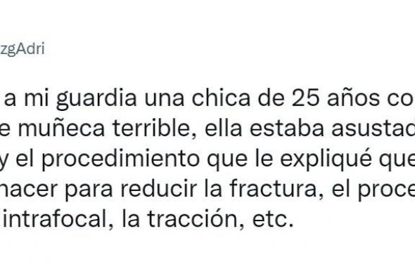 “Ayer llegó a mi guardia una chica de 25 años con una fractura de muñeca terrible, ella estaba asustada por la situación y el procedimiento que le expliqué que íbamos a hacer para reducir la fractura, el proceso de anestesia intrafocal, la tracción, etc”, contó este sábado el médico.