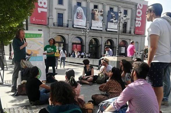 Dentro de esta actividad reivindicativa, nos encontrábamos en la plaza de Ópera profesores/as y alumnos/as del Máster de Estudios Medievales de la UCM, y, tras haber expuesto las características (y problemas) que tiene el máster, y cuatro brillantes TFMs (gracias, Pilar, Iván, Adrián y Gonzalo), dialogábamos ante el público (unas 50 personas), y ante los curiosos que se paraban a escuchar, sobre algunas ideas básicas del mundo medieval, como el contemptu mundi (el desapego del mundo) o la vanidad de las cosas materiales y del poder, cuando, muy oportunamente, llegó la noticia de la dimisión de Cifuentes y la plaza estalló en un alborozado aplauso.