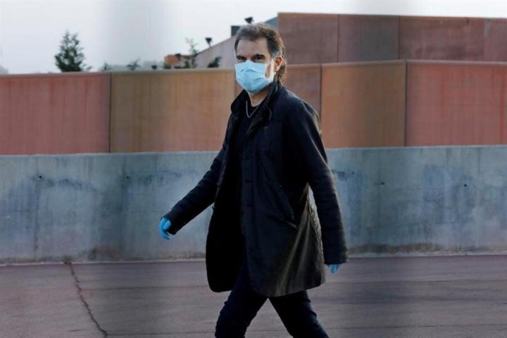El líder de la entidad soberanista se ha dirigido a su empresa en Santa Perpètua de Mogoda (Barcelona), adonde ha llegado a las 09.10 horas, en un coche negro en el que viajaba en el asiento trasero, portando mascarilla y guantes.