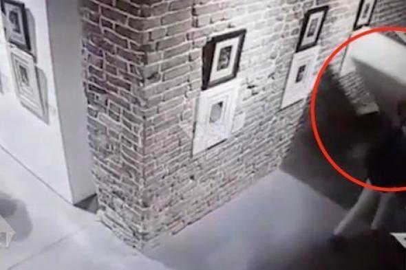 Según el vídeo divulgado por la prensa local, al intentar sacarse un selfi las jóvenes provocaron la caída del panel, que aplastó en su caída a los dos cuadros de la exposición El sueño de la razón.