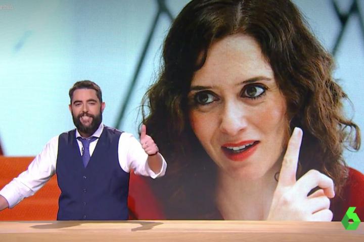 ″¿Sabéis lo que piensa Ayuso cada mañana al mirarse al espejo? Piensa ‘cómo me puedo superar hoy. Ya he soltado lo de los concebidos no nacidos con carnet, lo de que me gustan los atascos, lo de que hay gente deseando tener un contrato basura... ¿Qué puedo decir hoy para que El Intermedio pueda rellenar cinco minutos? ¡Lo tengo! Lo de que si gana Podemos en Madrid nos vamos a quedar sin casas’”, ha ironizado Mateo.