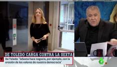 “Ya lo habéis oído, laSexta hace negocio con la erosión del sistema democrático. Yo me estoy forrando, hoy entre Zapeando y El Intermedio tenía un ratito y me he puesto a erosionar el sistema democrático un rato. Rasco por aquí y rasco para allá y pum, dos millones de dólares”, aseguró con mucha ironía.