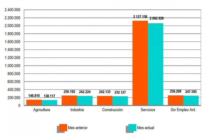 Este descenso es especialmente llamativo en el sector servicios, que baja en 64.000 personas (un 3% menos), y en la construcción, que reduce el paro en un 4,1% con 10.000 desempleados menos.