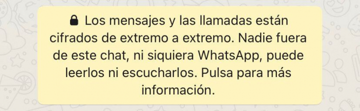 — WhatsApp no puede ver tus mensajes privados o escuchar tus llamadas. Tampoco lo puede hacer Facebook. Esto es porque los mensajes están protegidos por un cifrado de extremo a extremo. Están comprometidos a que esta seguridad no se pierda y etiquetan cada chat para recordar su compromiso.