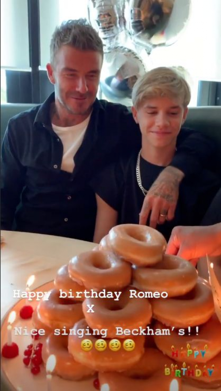 Romeo Beckham ya tiene 17 años. Este domingo el segundo de los hijos de David y Victoria sopló las velas en una curiosa tarta hecha con donuts (la puedes ver más abajo) durante una fiesta 100% familiar.