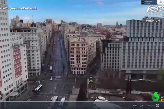 David Broncano, humorista y presentador de La Resistencia (Movistar+) y La Vida Moderna (Cadena SER), ha captado una espectacular instantánea desde la terraza de su casa, situada en la céntrica plaza de España de Madrid.
