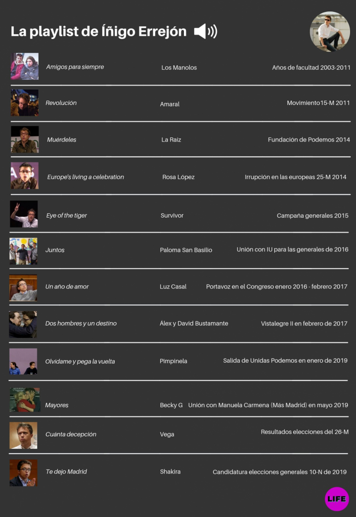 Conocida su pasión por la música, qué mejor para recorrer su trayectoria política que con una buena banda sonora. Desde el 15-M a su candidatura para el 10-N: la carrera de Errejón, en 12 canciones.