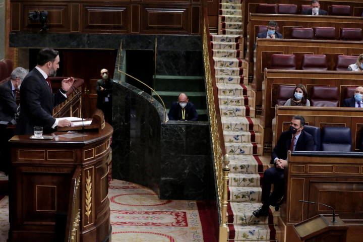 La segunda parte de Abascal durante la moción de censura, apocalíptica y trumpista, bebe de Disenso, su 'think tank'.
