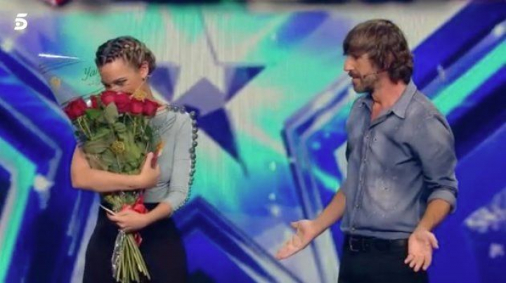 El presentador Santi Millán apareció en el escenario con un ramo de 12 rosas rojas. Primero dijo que eran para alguien de los presentes y después acotó, señalando a los jueces: "Más concretamente, para alguien de vosotros cuatro".