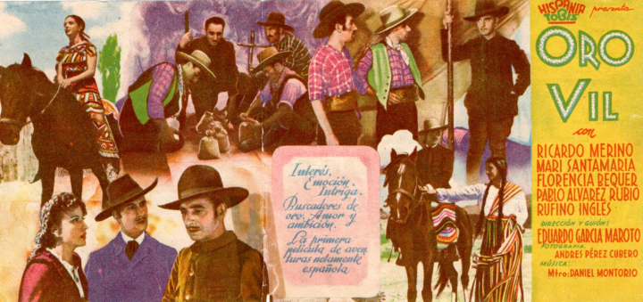 En estos días de confinamiento por la pandemia del Covid, se está viendo más cine que nunca, de cualquier tipo y género. El western, por ejemplo, tiene una importante presencia en programaciones o plataformas. También el cine del oeste rodado en España, estos días reivindicado en las diferentes redes sociales, en artículos y en documentales. Unos rodajes que se remontan a tiempos anteriores a la eclosión del género en los años sesenta, con el rodaje de la película de Maroto. Si bien había habido coqueteos con las ambientaciones del lejano oeste en el cine mudo español, en Lilian y en 48 pesetas de taxi, se puede considerar Oro vil como el primer western español como tal, con sus tramas clásicas, sus pistolas, sus duelos y sus caballos.