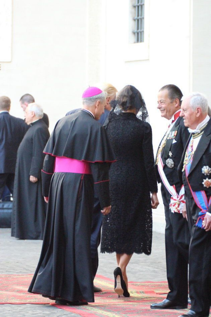 Trump entregó al papa el libro de Martin Luther King La no violencia, estilo de una politica por la paz. Melania Trump cumplió de forma rigurosa con el protocolo y vistió vestido negro de encaje con velo.