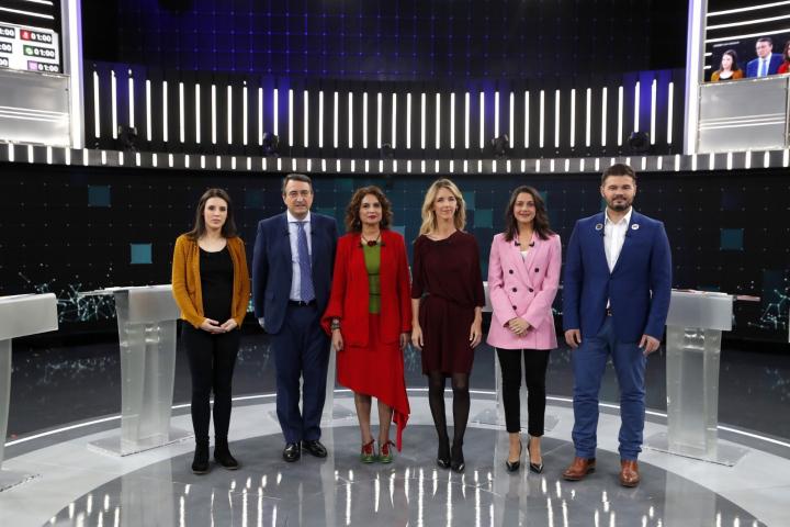 Un debate que había empezado desquiciado, como esta campaña, con tono brusco, con muchos nervios, con palabras entrecortadas, llevado al extremo. Los rivales: María Jesús Montero (PSOE), Inés Arrimadas (Ciudadanos), Cayetana Álvarez de Toledo (PP), Gabriel Rufián (ERC), Aitor Esteban (PNV) e Irene Montero (Unidas Podemos). Todos bajo la batuta del periodista Xabier Fortes.