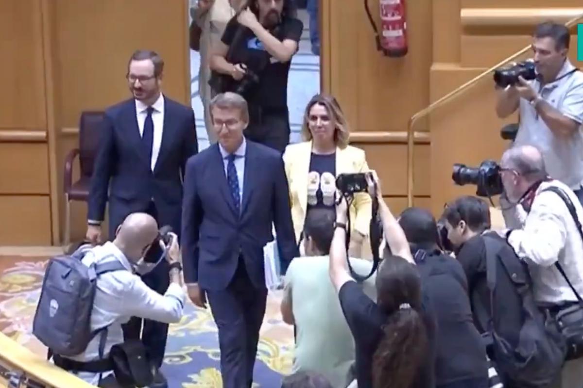 Sin embargo, el primer detalle de la tarde llegaba antes de las declaraciones del jefe del Ejecutivo y de la mano del presidente del PP, que irrumpía en el Senado con traje y corbata, algo que no ha pasado desapercibido en Twitter.