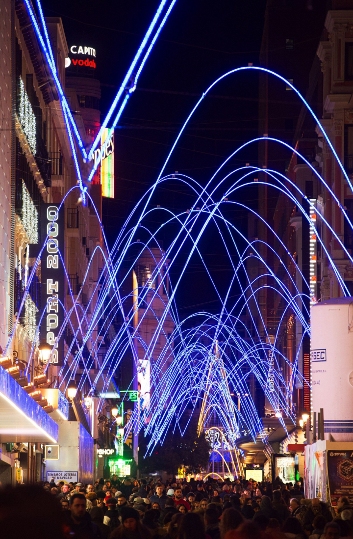 Existe un término medio entre los arcos de la calle Larios de Málaga y los de la madrileña Preciados. Esas tristes luces de neón llevan años colocándose en la capital cada vez que llega la Navidad pero bien podrían ser un homenaje a las espadas láser de Star Wars.