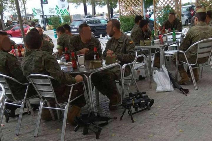 La imagen de unos militares en un bar de Vilafranca del Penedés (Barcelona) ha provocado una intensa polémica en las redes sociales donde los diputados de ERC y Bildu, Gabriel Rufián y Jon Inarritu, respectivamente, la compartieron y criticaron.