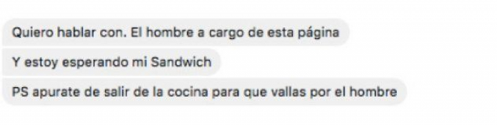 La nueva moda que se lleva dando desde hace unas semanas es dejar a un lado el preguntar por el hombre al cargo y pedir sandwiches. "Hola, creo que tienen experiencia, ¿me pueden dar alguna receta para un sandwich?", escriben. Otros hacen el original chiste de la limpieza que nunca nadie ha usado para denigrar a las mujeres: "¿Me van a mandar mi sandwich o están ocupadas limpiando?".