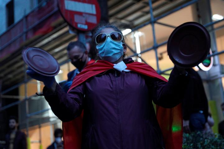Este miércoles por cuarto día consecutivo, decenas de personas se congregaron en la zona de Núñez de Balboa sin guardar la distancia exigida, para reclamar la dimisión de Pedro Sánchez al frente del Gobierno por su gestión sobre la pandemia del coronavirus al grito de “libertad” y con una sonora cacerolada.